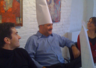 In het pitoreske Dinant in de kapel van het klooster op zoek naar ideeën. En na het diner de kelder in van het Leffe museum.