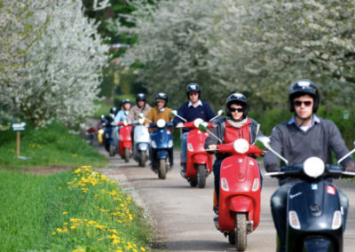 Met de vespa door Haspengouw. Met stops aan het doorkijk kerkje of op de fruitboerderij.