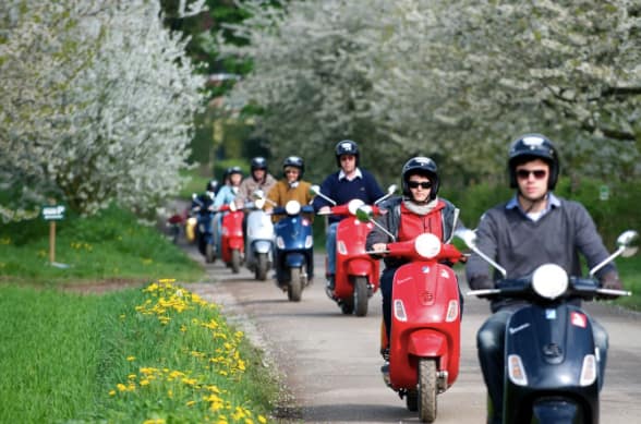 Met de vespa door Haspengouw. Met stops aan het doorkijk kerkje of op de fruitboerderij.
