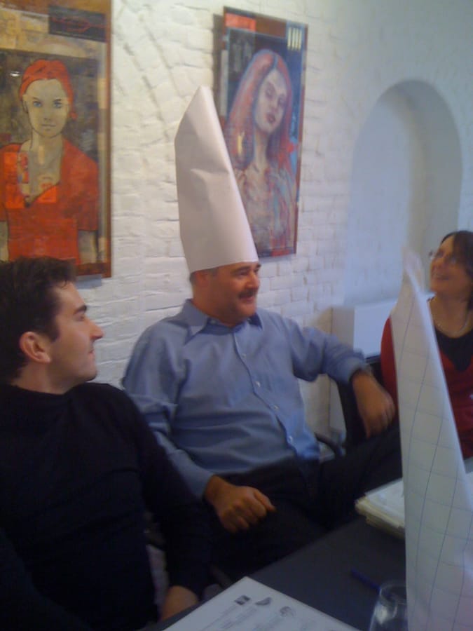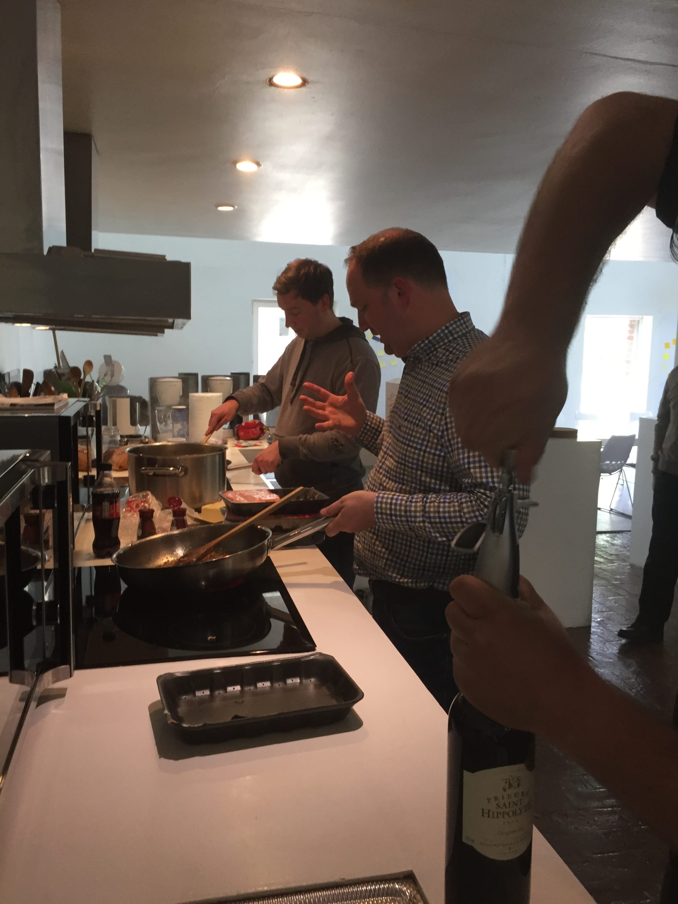 In het pitoreske Dinant in de kapel van het klooster op zoek naar ideeën. En na het diner de kelder in van het Leffe museum.